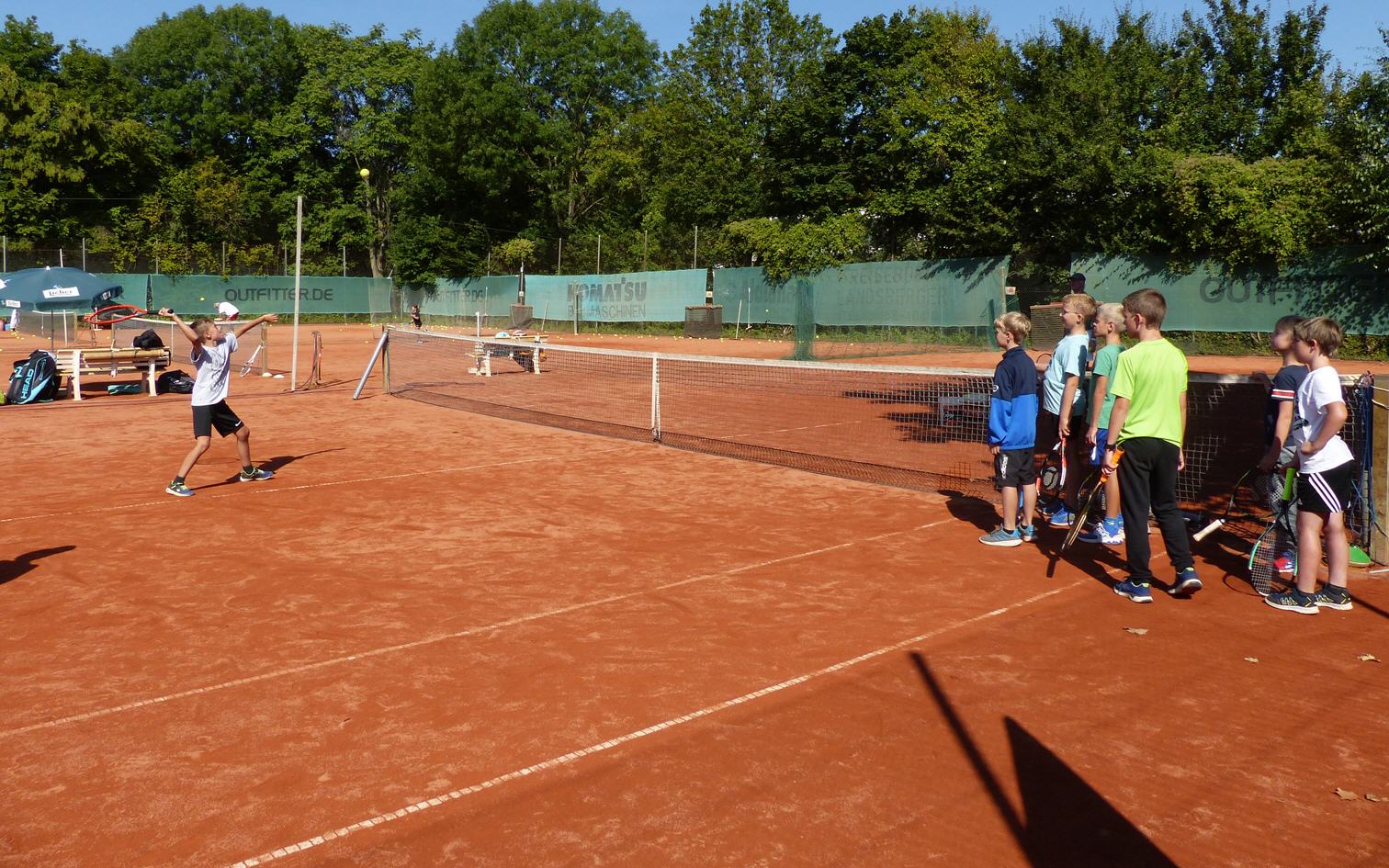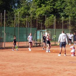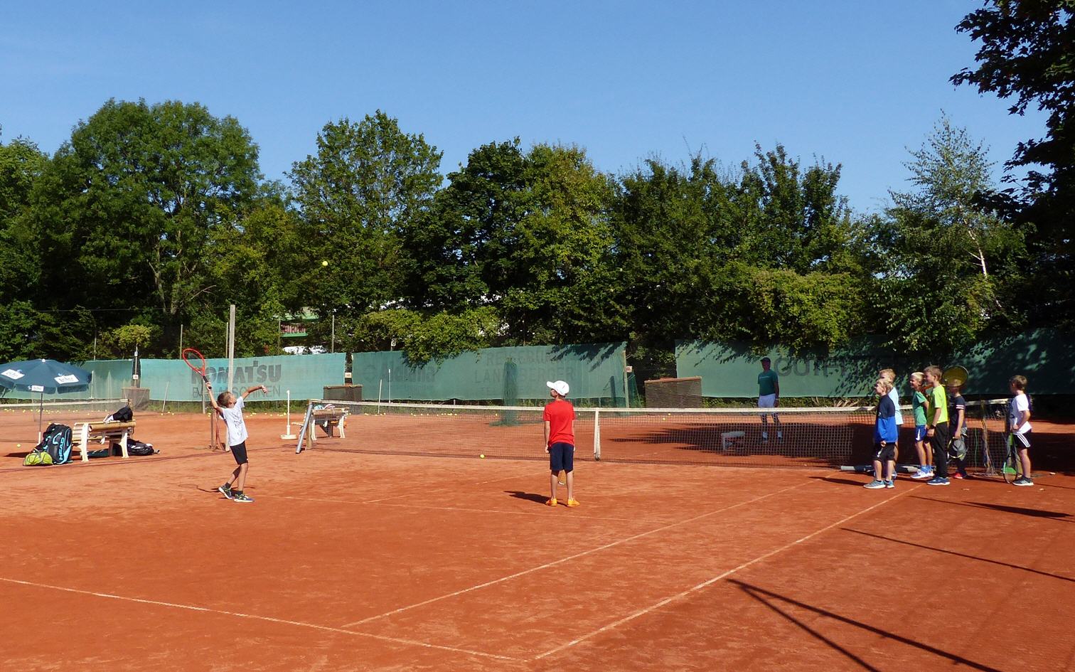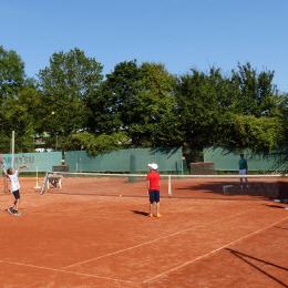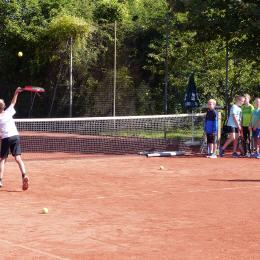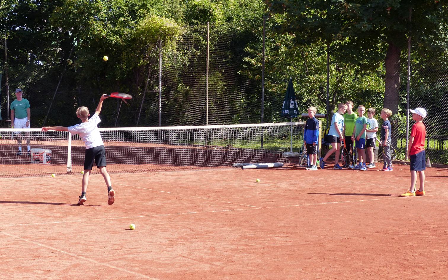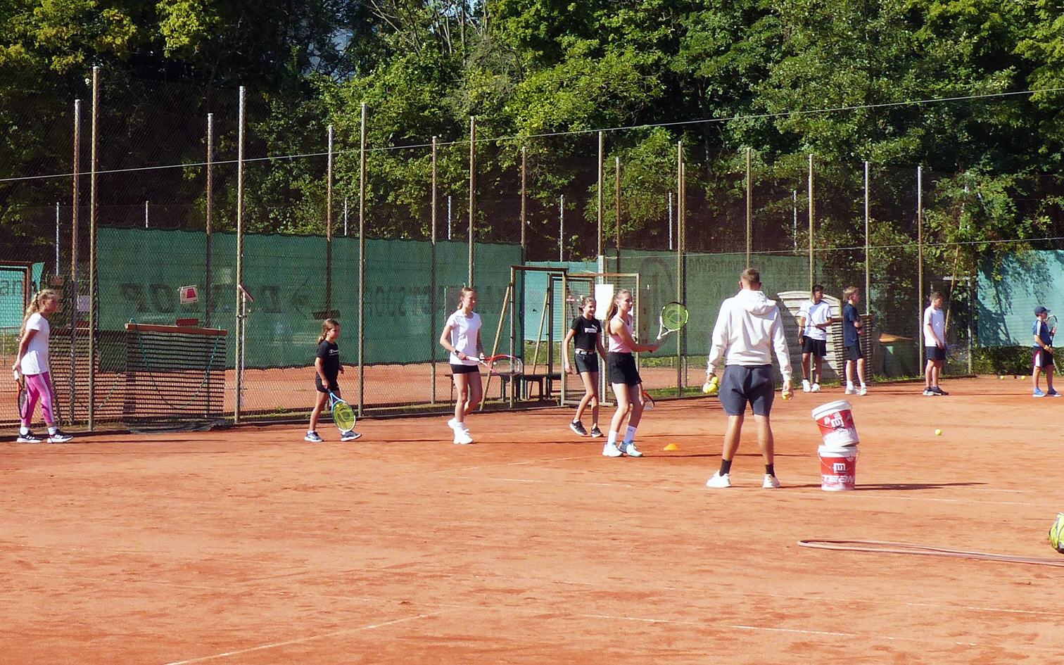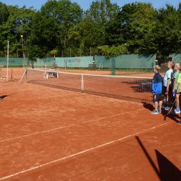 Tenniscamp mit 21 Kindern, diese werden am Vormitttag und nachmittags von unseren Trainern Uwe und Philipp betreut.